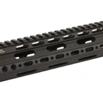 Leapers 9″ UTG rail system for AR rifles is a mid length, super slim free float handguard with proprietary attachment design in an extremely compact profile. It is super lightweight with a rail at the 12 o’clock position and forms a continuous picatinny top section. It includes three user detachable 2-slot rail sections for the 3″ 6″ and 9 o’clock positions. It has an internal anti-rotation tab for rock solid locking and an ergonomic slim tubular profile for most positive handling.